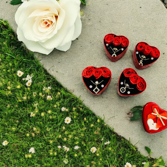 Valentine’s Gift – Artificial Jewellery Set in Heart-Shaped Box (Necklace, Earrings & Ring)