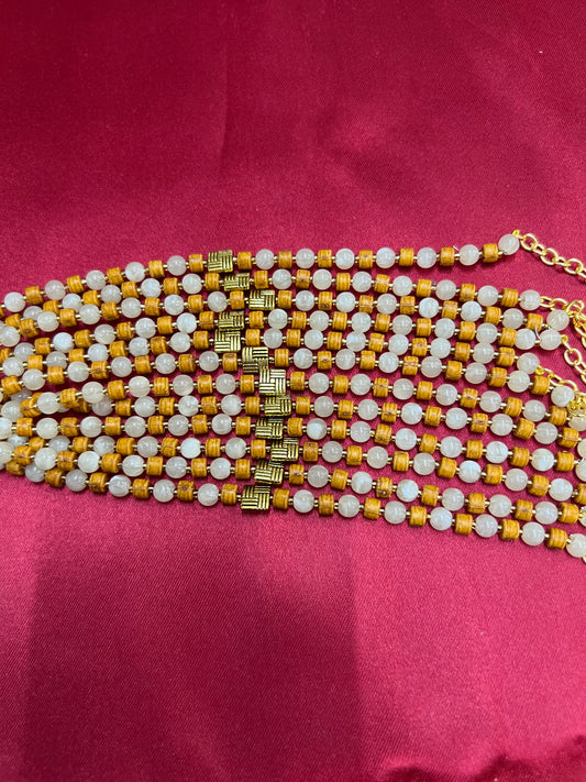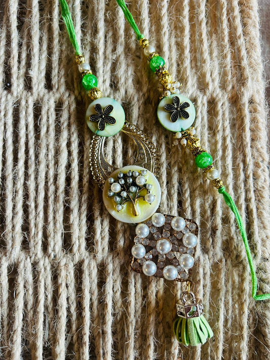 Wrap Shap Designer Bhaiya Bhabhi Rakhi Lumba Set - Model P66 with Pearl Work on Agate Stone & Metal Base