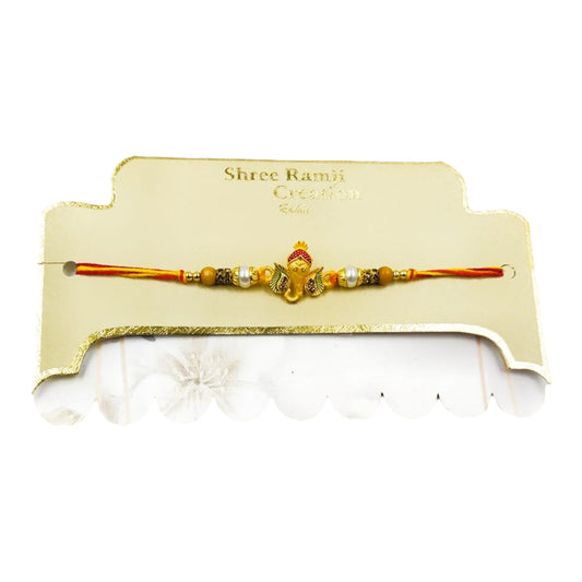 Wrap Shap Designer Ganesh Rakhi with Card Packing - Z3, Includes Roli Chawal