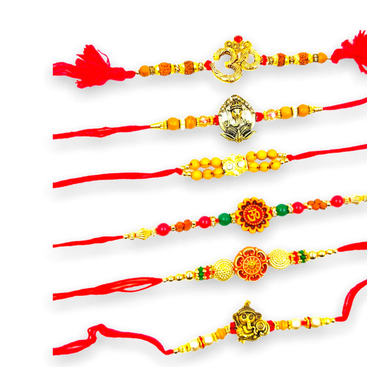Wrap Shap Combo 6: Set of 6 Premium Designer Rakhis - Ganesh, Om & More