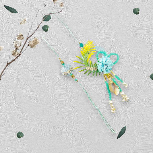 Wrap Shap Green Bead with double Ladi Rakhi - Model EE51 with Roli Chawal