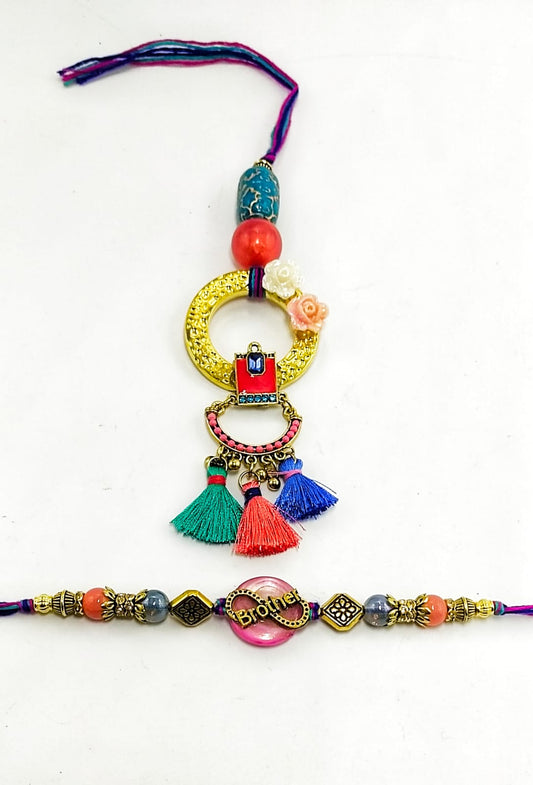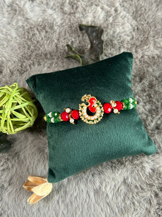Wrap Shap G9613 Rakhi with Multicolor Beads - Includes Roli Chawal