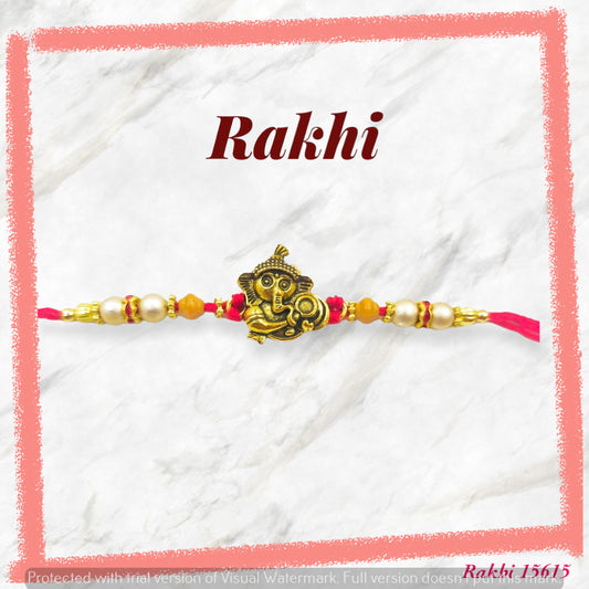 Wrap Shap Ganesh Rakhi with Roli Chawal - Model 15615