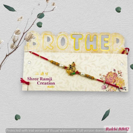 Wrap Shap Ganesh Rakhi with Roli Chawal - Model BB02