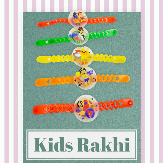 Wrap Shap Kids Rakhi - Multi Characters Light Rakhi (A) with Doremon, Motu Patlu, Pikachu & More, Comes with Roli Chawal
