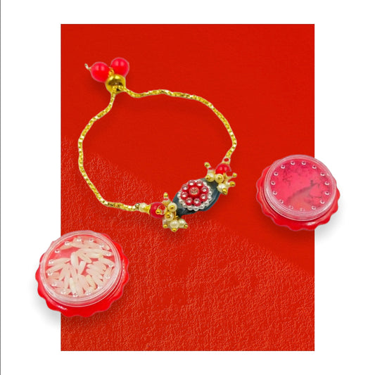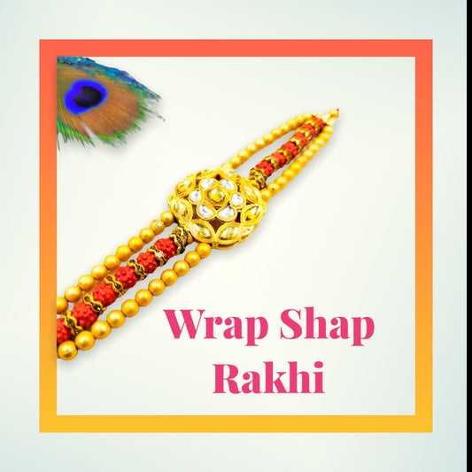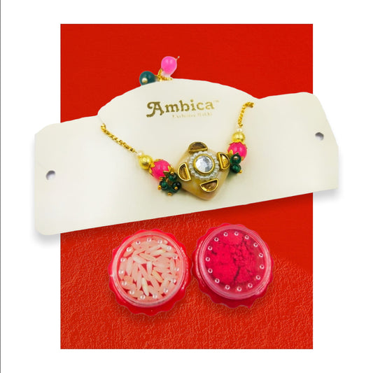 Wrap Shap Kundan Heavy Rakhi with Brown Beads - Model 15600 with Roli Chawal