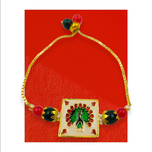 Wrap Shap Ladies Lumba Bracelet - Design27 Meenakari Peacock Work with Roli Chawal