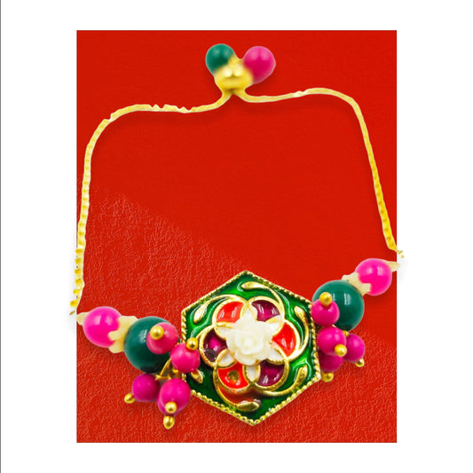 Wrap Shap Ladies Lumba Bracelet - Design1 Meenakari Work with Roli Chawal