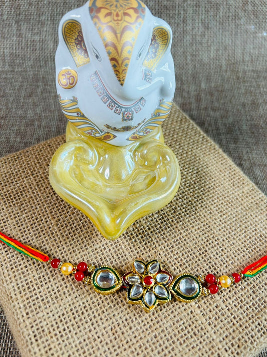 Wrap Shap Kundan Flower Design Rakhi with Roli Chawal - Model 8719