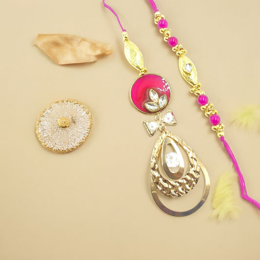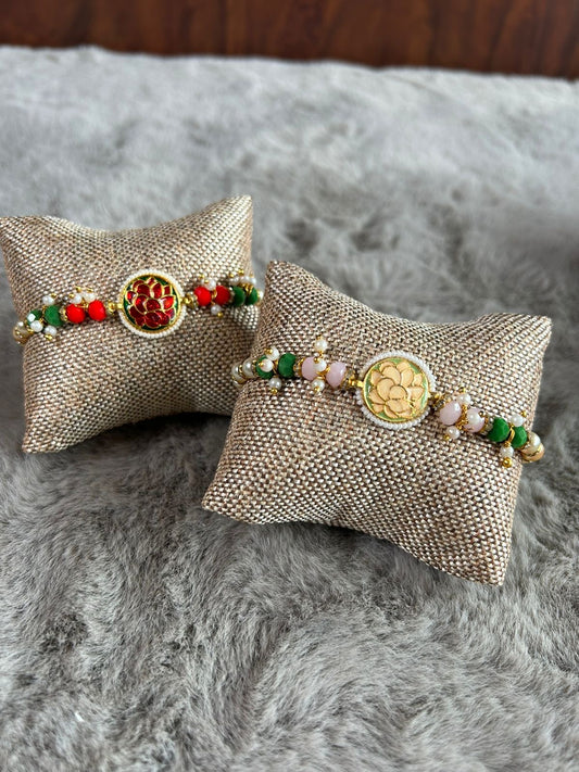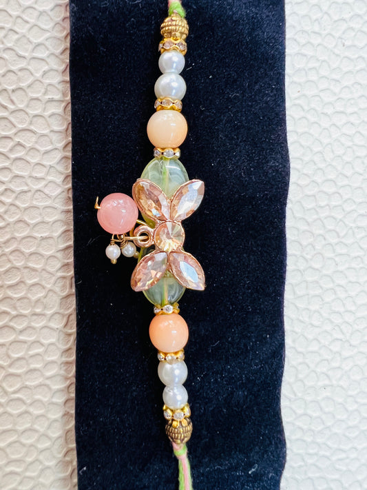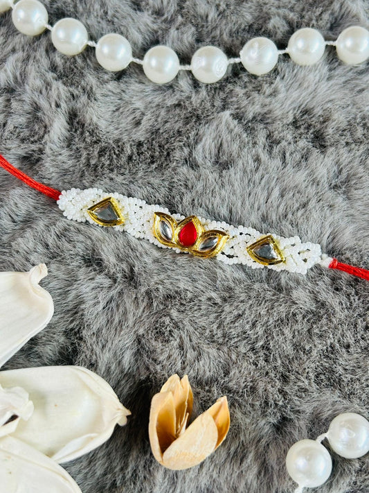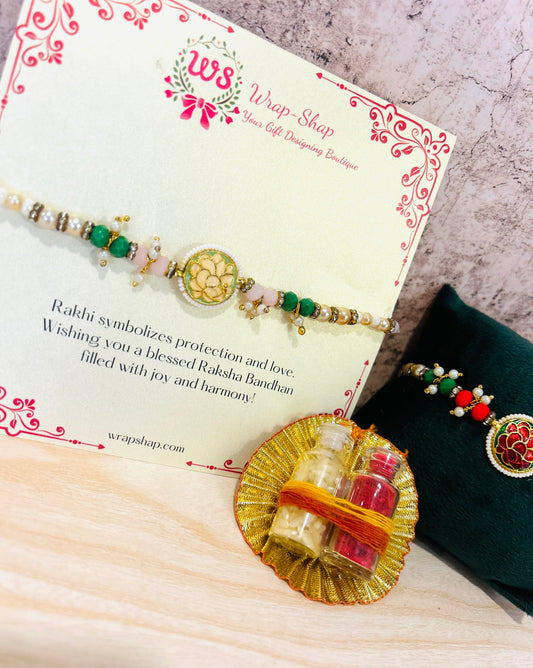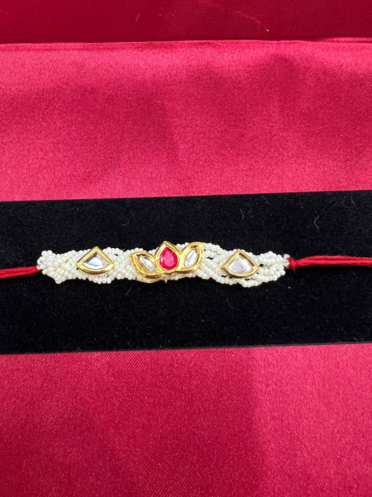 Wrap Shap Pearl Beaded Rakhi with Kundan - Model R80 with Roli Chawal
