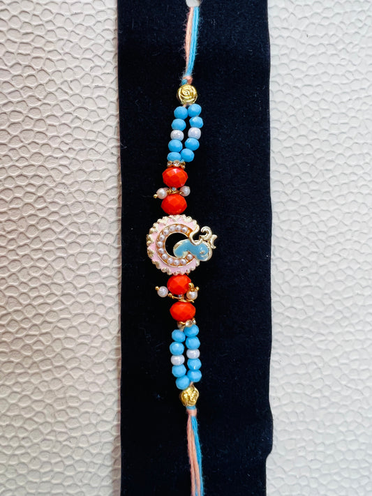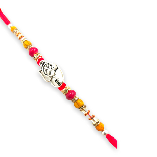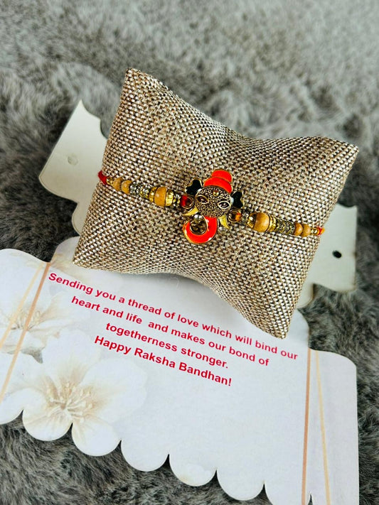 Wrap Shap R96: Designer Rakhi with Premium Beads and Om Ganpati Design, Roli Chawal Included