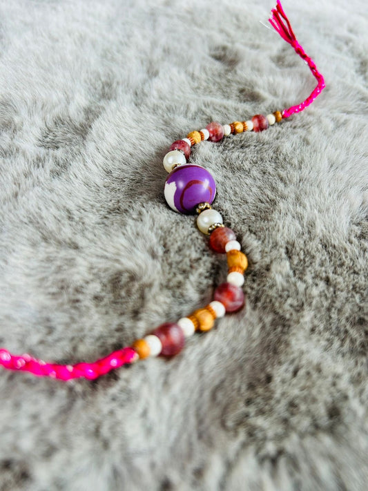 Wrap Shap Purple Sphere Rakhi - Model RM810 with Roli Chawal