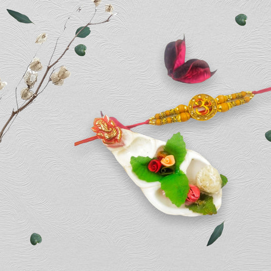 Wrap Shap Om Rakhi with Roli Chawal - Design H10