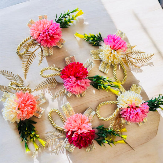 2 Flower Bunch Set with Dori – Assorted Colors | Tray & Saree Packing Decoration by Wrap Shap