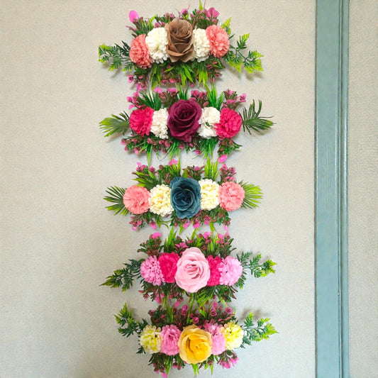 Premium Rope-Style Artificial Flower Bunch – Pink, White & Purple Pastel Theme for Big Hamper, Saree & Lehenga Packing (36 Inch)