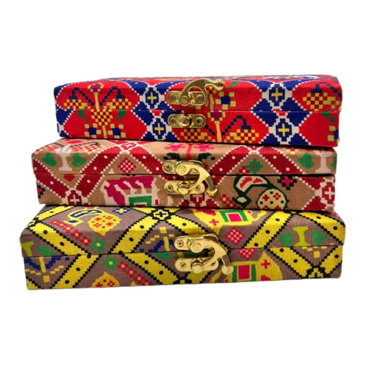Exquisite Patola Print Cloth Cash & Gaddi Gift Box - Mixed Colors, 8"x4"x2"