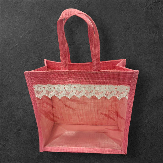 Transparent Front Jute Gifting Bags - 8inch X 4inch