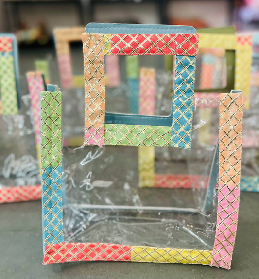 PVC Transparent Gifting Bags with Multicolored Gota Lace | Return Gift & Wedding Favour Bags | Wrap Shap