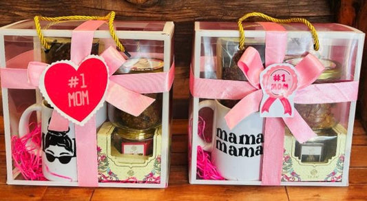 Mother’s Day Gift Hamper with Cookies, Tea Cake, Custom Mug & Scented Candle in PVC Box