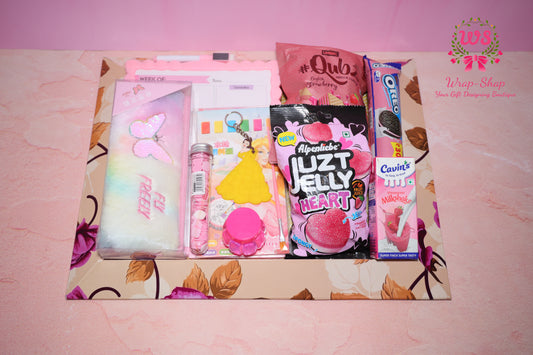 Personalized Kids Birthday Return Gift Hamper – Stationery, Chocolates, Bottle & Brownies in Custom Name Box