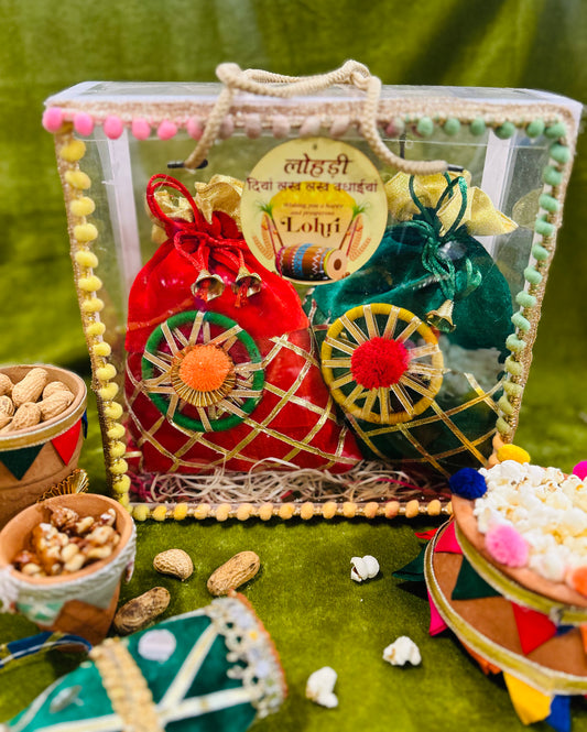Traditional Lohri Hamper in a Decorated Transparent PVC Bag with 500gms Gajak & 50gms Popcorn