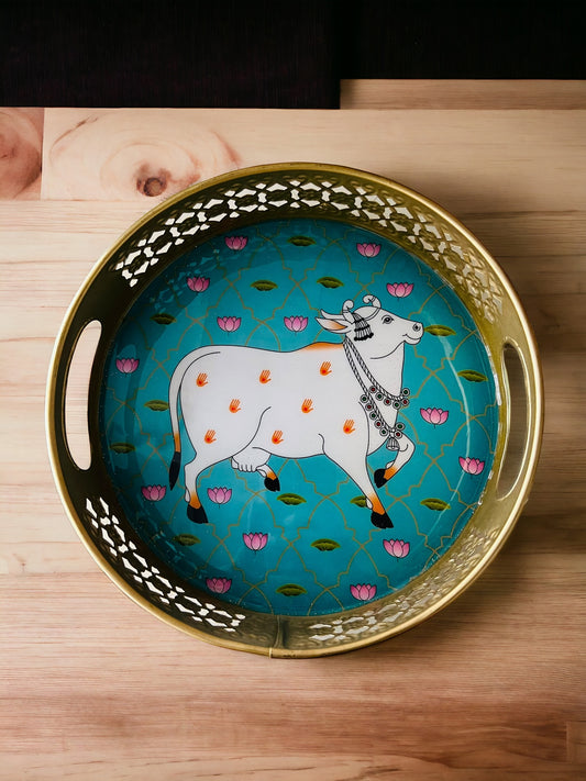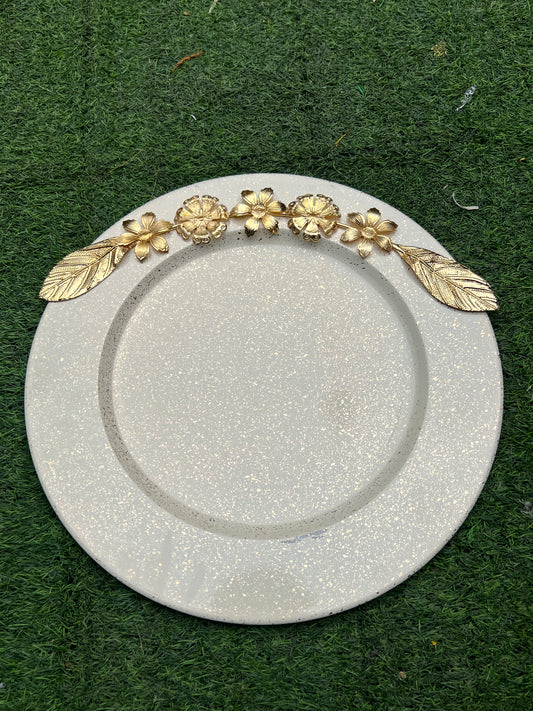 Cream Metal Decorative Platter for Dry-fruit gifting
