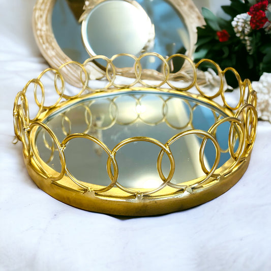 Reflective Elegance: 10-Inch Metal Basket with Mirrored Base