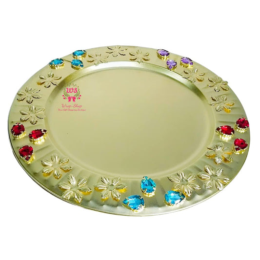 Metal Decorative Platter with Gemstones for Dry-fruit gifting