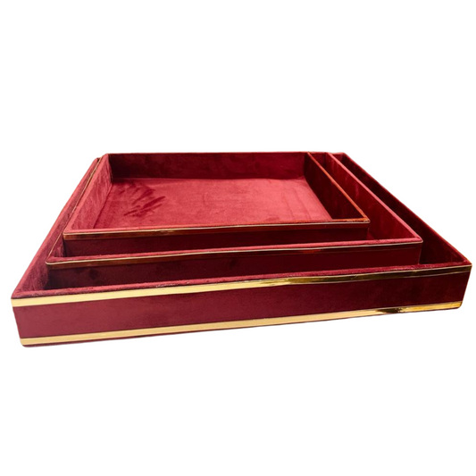 Luxurious Velvet MDF 3 Pcs Tray Set – Ideal for Gift Packing, Hampers, Weddings, and More