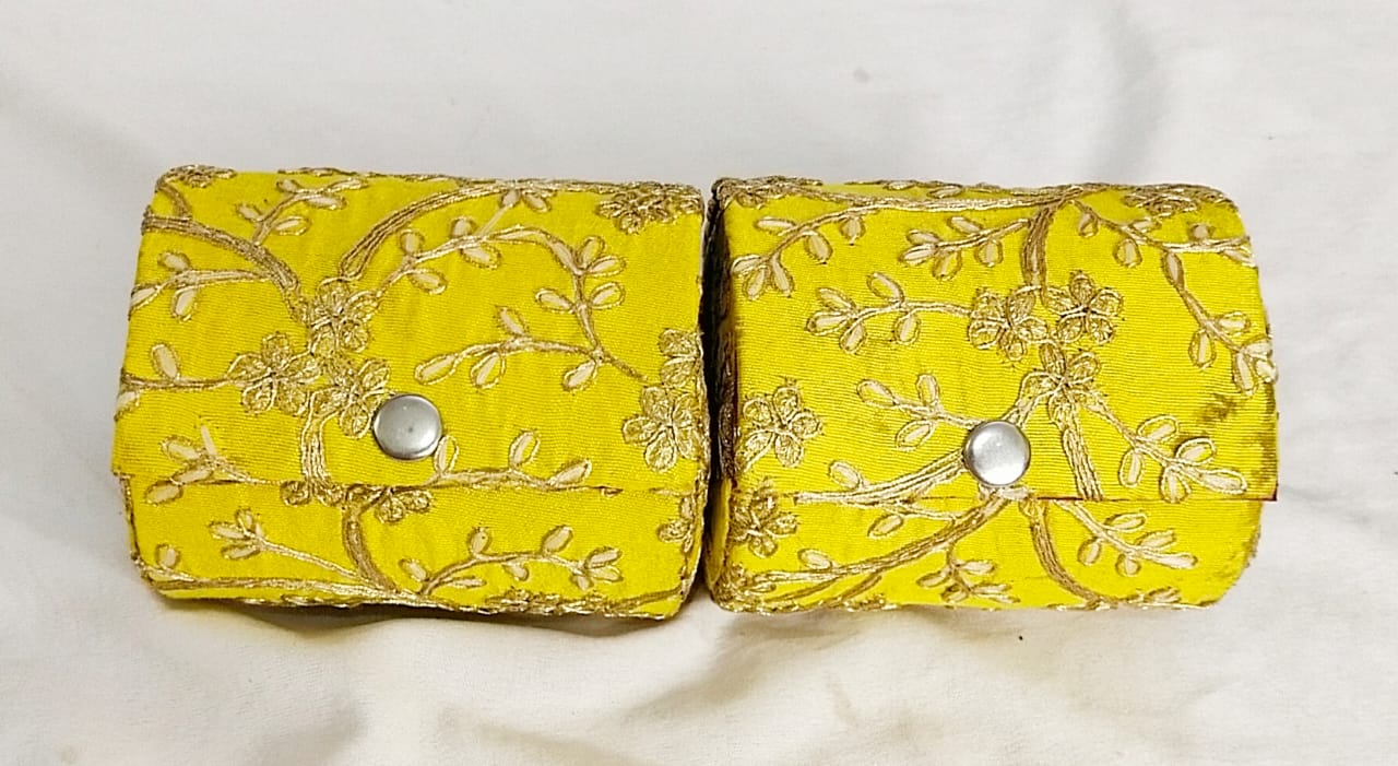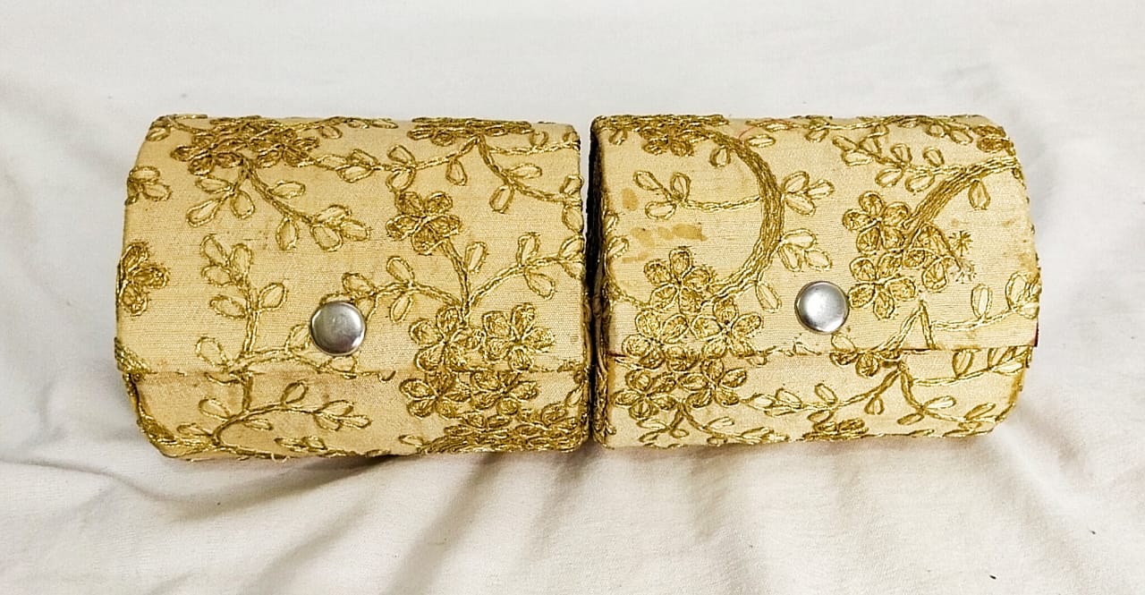 Add elegance to your bangles and gifts with Wrap Shap’s Small Round Bangle Box, beautifully wrapped in traditional embroidered fabric. This compact and stylish box is perfect for presenting bangles during weddings, festivals, engagements, or as a return favour for guests.