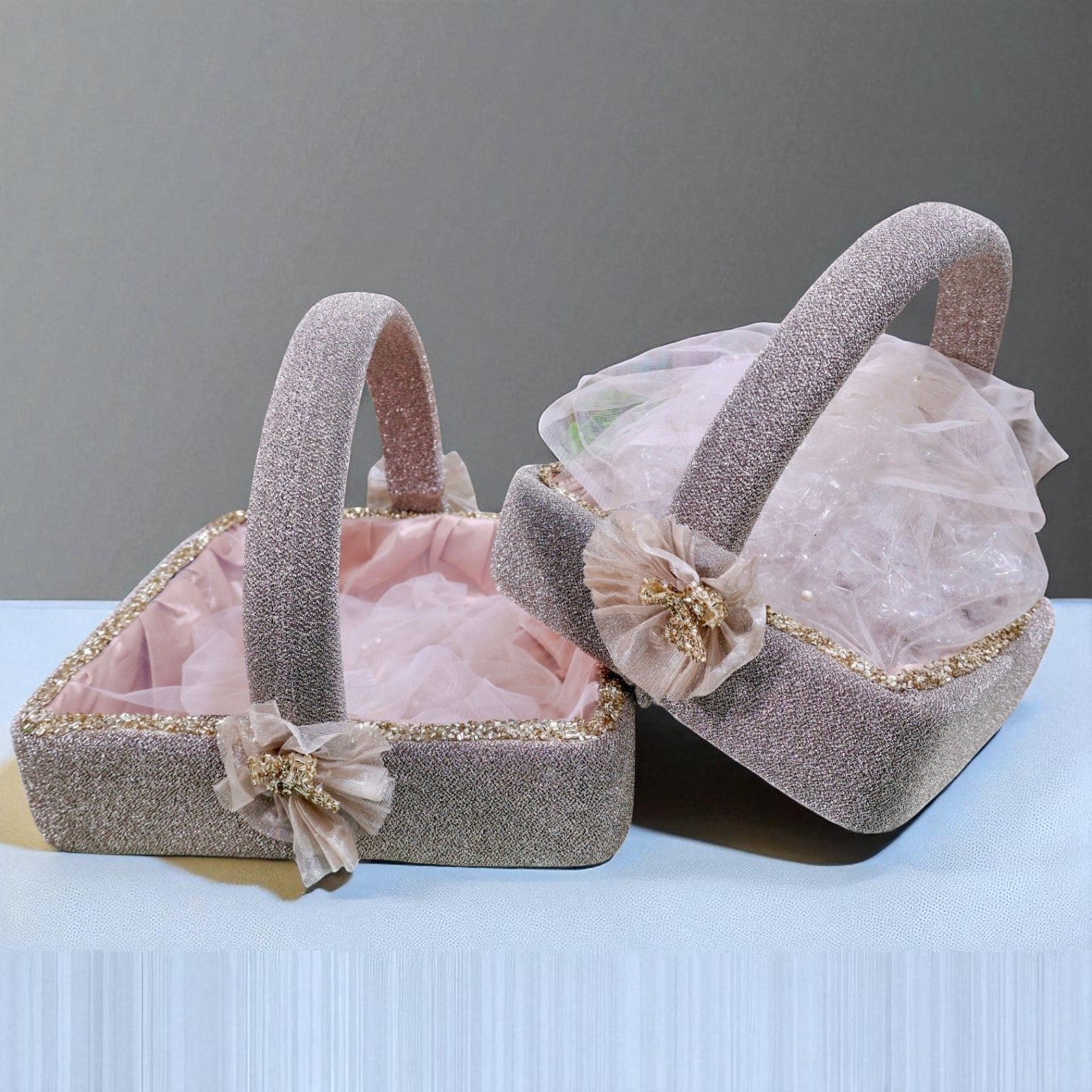 The square structure ensures generous space and balance, while the delicate net adds both protection and a premium look. Whether used for sweets, cosmetics, clothes, or décor items, this basket transforms every gift into a grand presentation.
